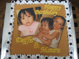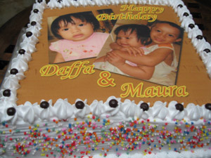 Sabtu long wiken yang lalu, dapat orderan dari Danty dalam rangka ultah Daffa & Maura yang kebetulan 2-2nya ultah di bulan Mei. Tapi karena yang diundang banyak yang keluar kota, party nya diundur sabtu kemarin (26 Mei 2007).